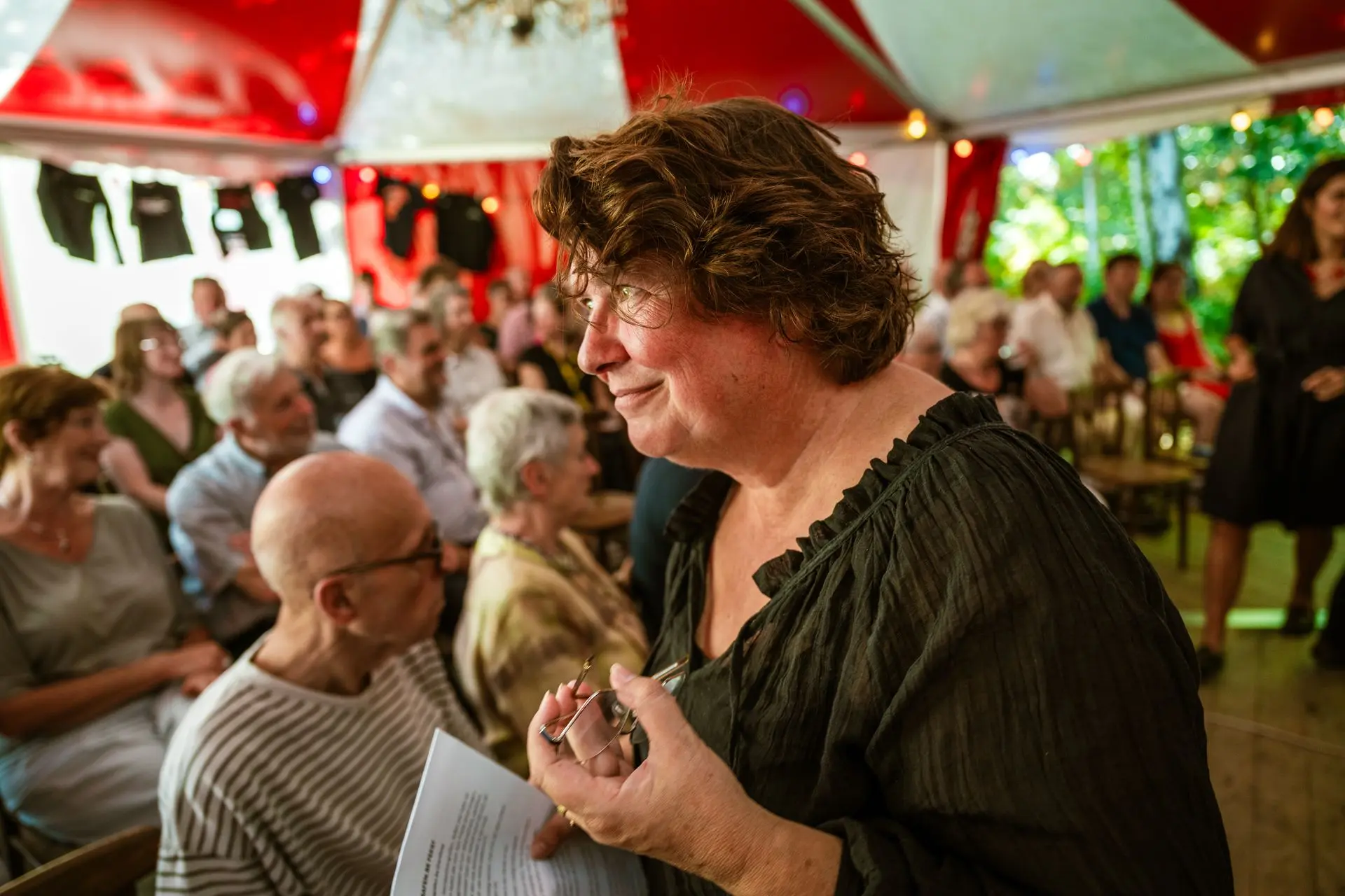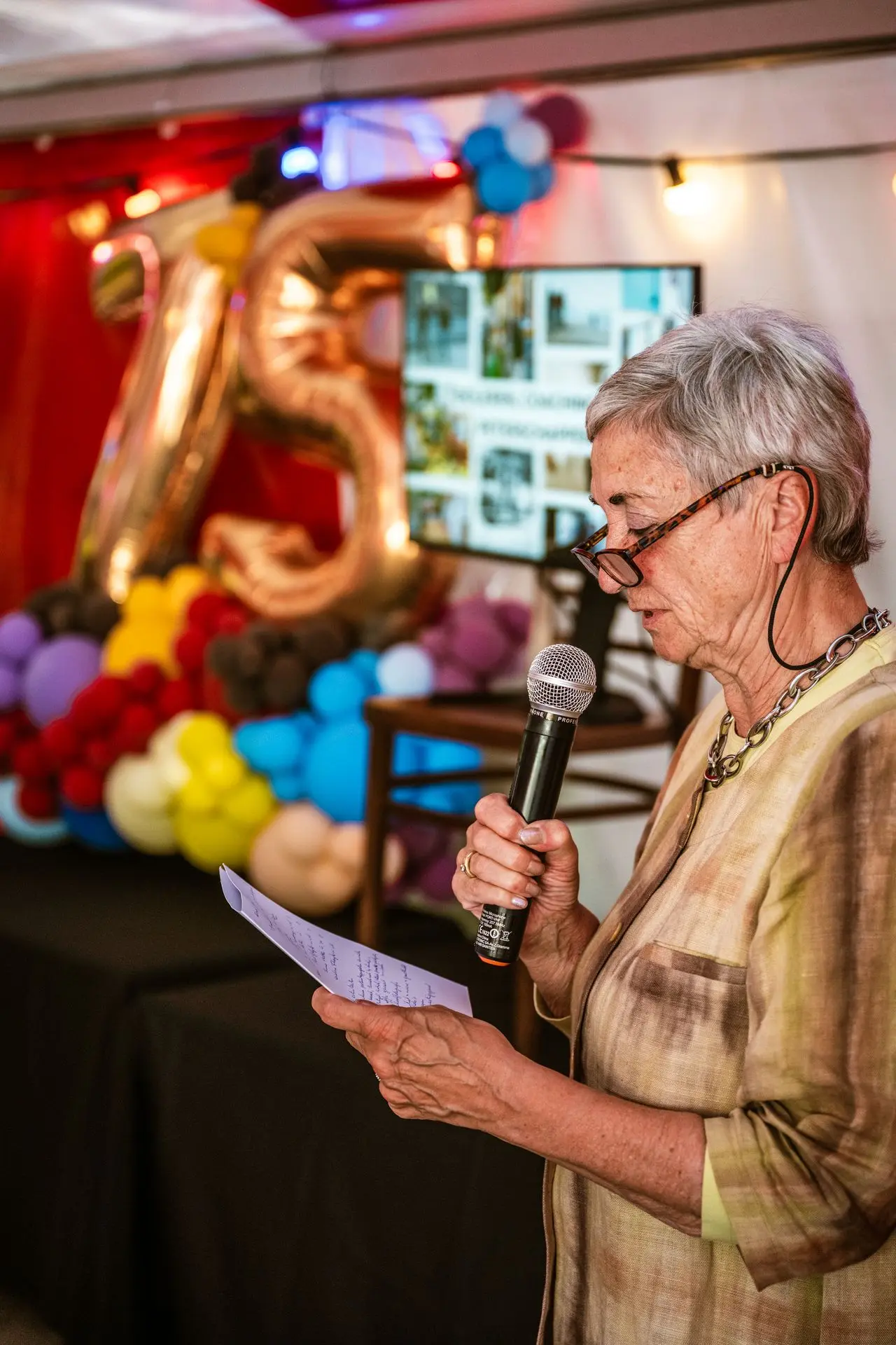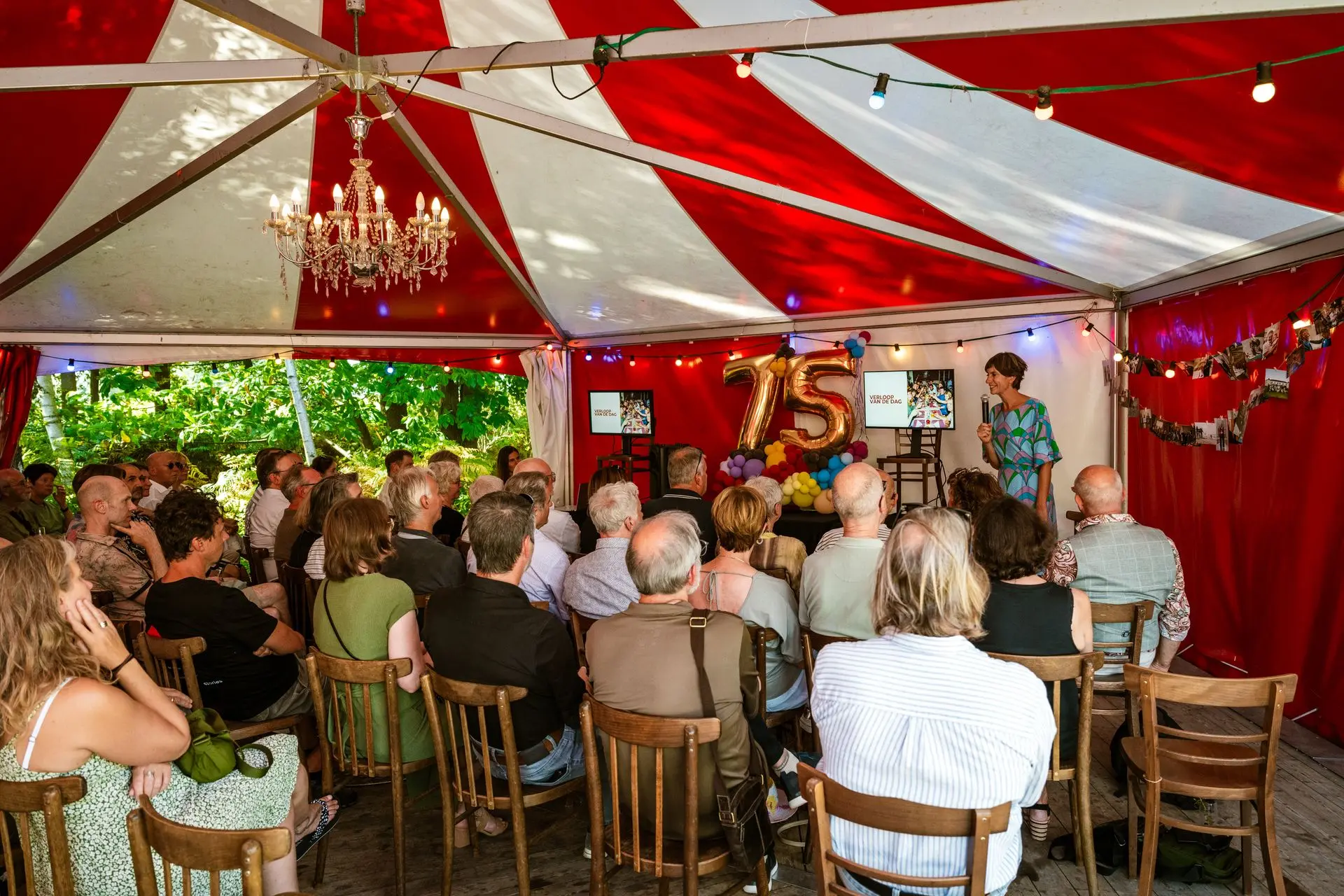 Daarna kwam de kracht van community centraal te staan. Marthe las enkele herinneringen uit de “oude doos” voor: grappig, warm, soms ontroerend. Het illustreerde perfect hoe 75 jaar verhalen samen het weefsel vormen van de vereniging.