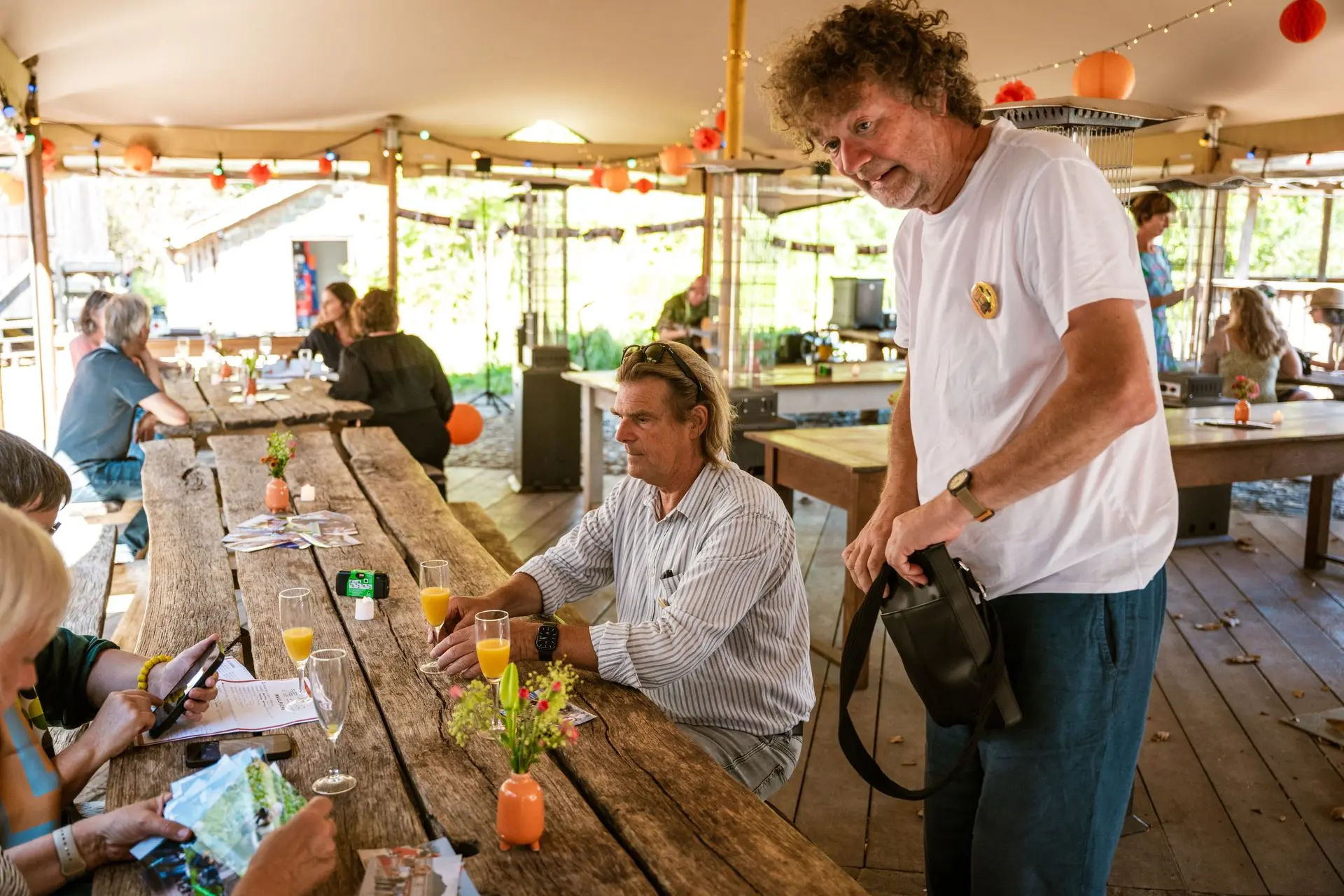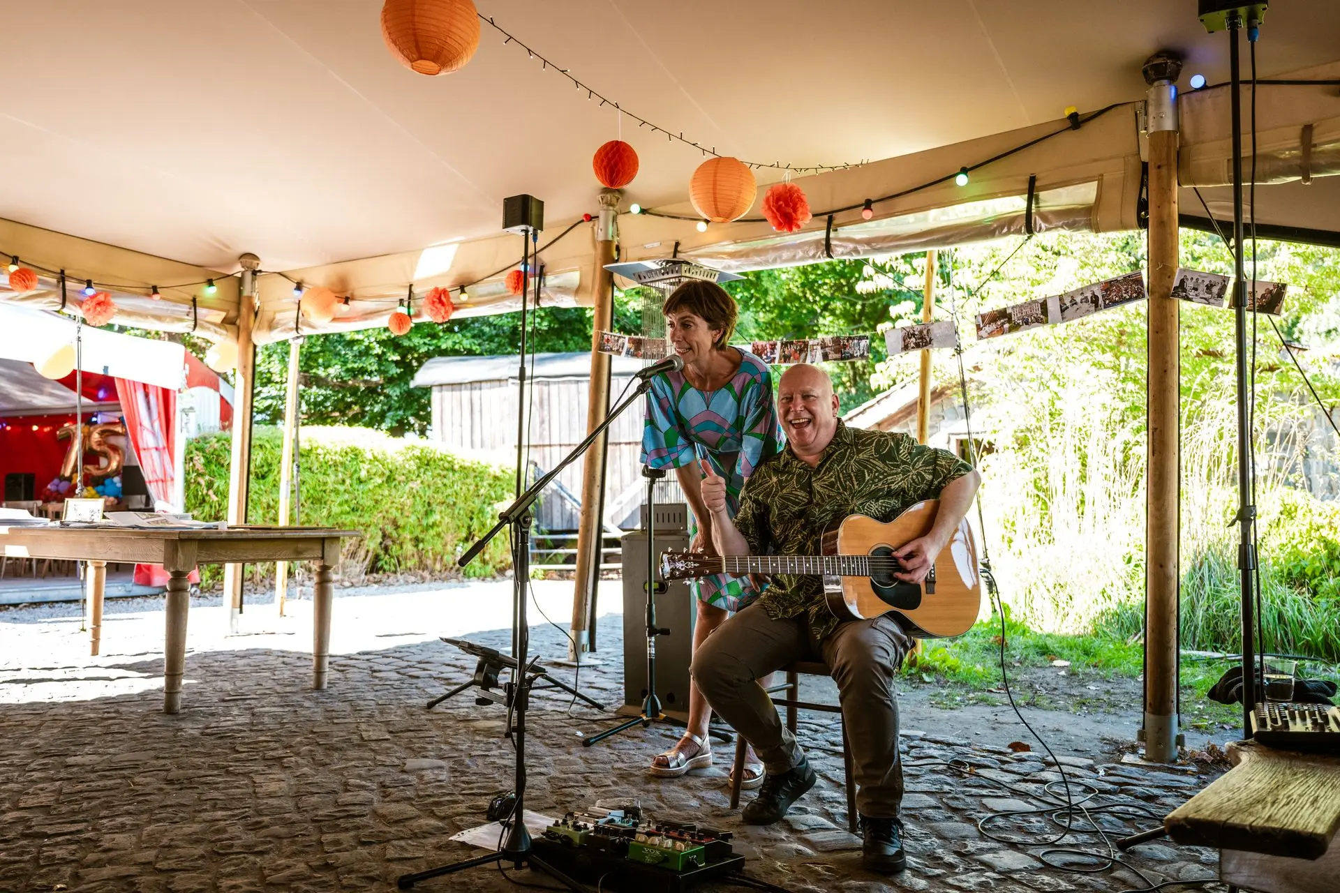 Na het officiële gedeelte volgde een uitgebreid taartenbuffet, vergezeld van drankjes en de sfeervolle live muziek van Little Chris. Het samenzijn was warm, vrolijk en gevuld met verhalen, herinneringen en nieuwe verbindingen.