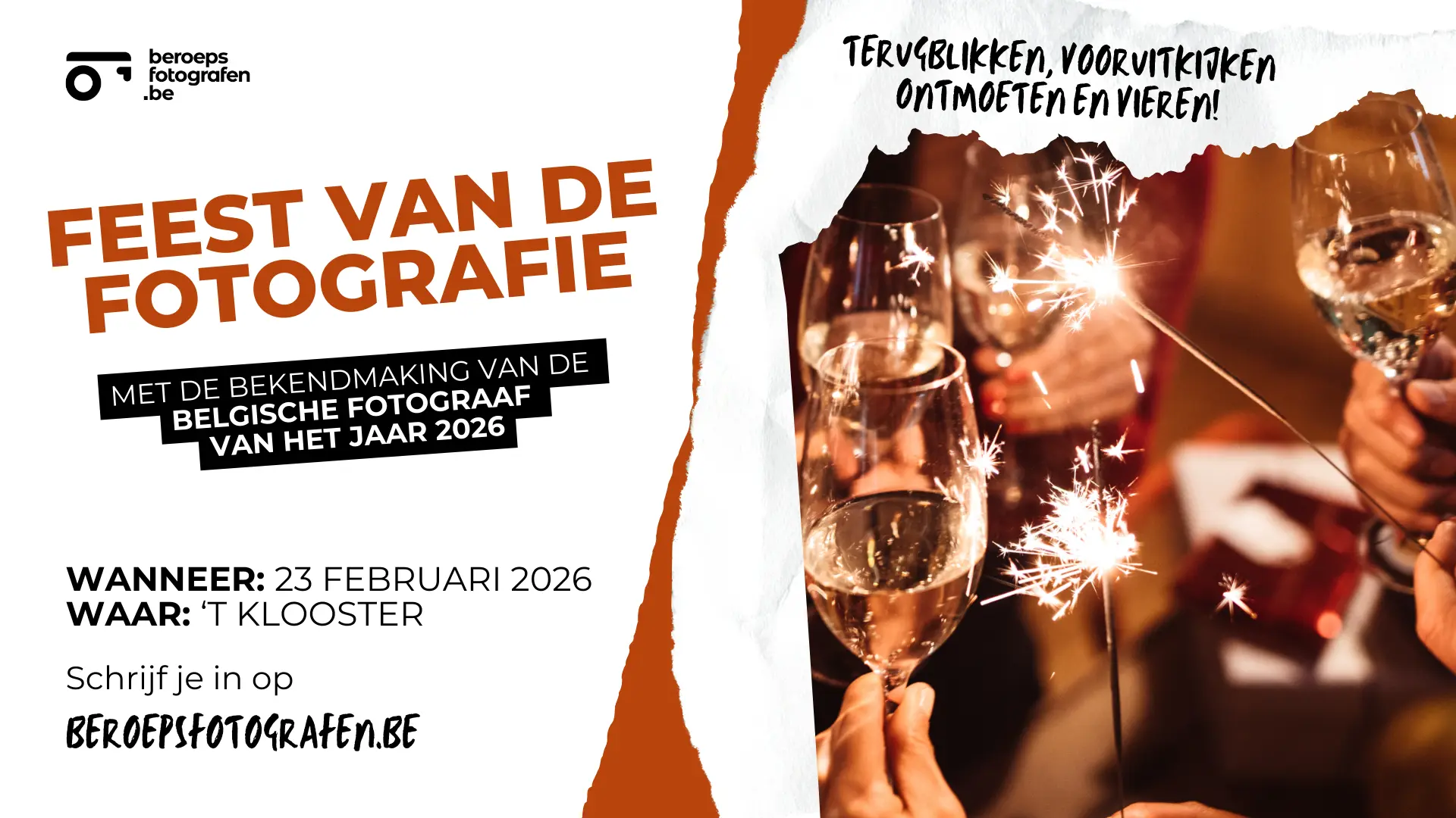 Op maandag 23 februari 2026 vieren we opnieuw ons jaarlijkse Feest van de Fotografie. Meer dan een evenement is dit hét moment waarop onze community samenkomt. Een avond waarop je collega-fotografen ontmoet, verhalen deelt, bijpraat en samen het glas heft op een nieuw creatief jaar. Dit is zo’n avond waar je als lid gewoon bij móét zijn omdat verbinding de basis is van alles wat we doen.